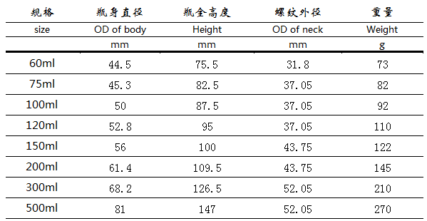 保健品包裝瓶,主要規(guī)格: 60ml、75ml、100ml、200ml、300ml、400ml、500ml。